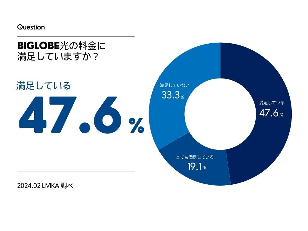 暮らしを豊かにするお役立ち情報メディア「LIVIKA」( https://livika.jp/ )は、BIGLOBE光ユーザーの料金に関する満足度について調査を行いました。