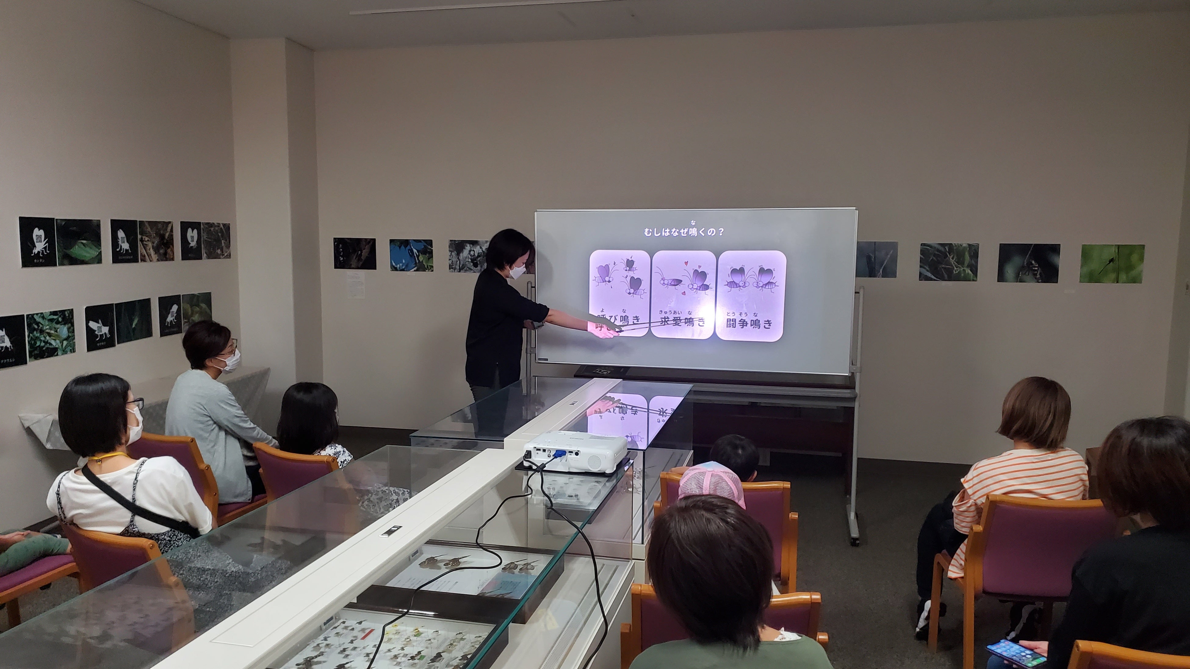 ⾍の鳴き声を当てる場面では、⼦どもたちから「コオロギ!」や「スズムシ!」という元気な声が上がり、楽しそうにクイズに参加いただきました 。