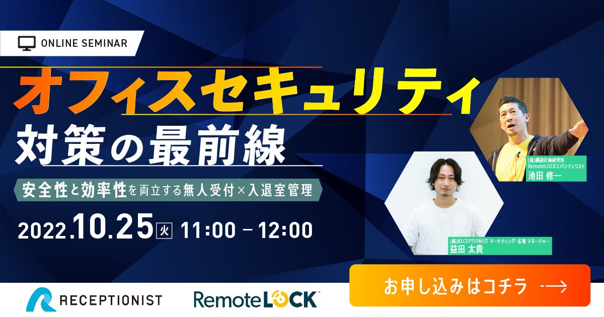 株式会社RECEPTIONIST・株式会社構造計画研究所の2社共催にて、オフィスセキュリティに関する最新の業務改革手法や実例、ノウハウを紹介する無料オンラインセミナーを開催いたします。