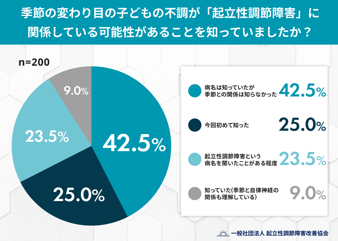 低い認知度: 季節の不調と「起立性調節障害」の関連性を正しく理解している保護者はわずか9.0%