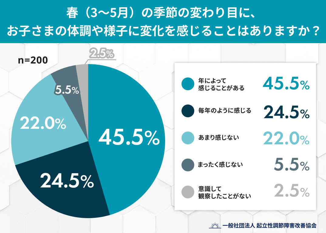 Q1:春(3〜5月)の季節の変わり目に、お子さまの体調や様子に変化を感じることはありますか?