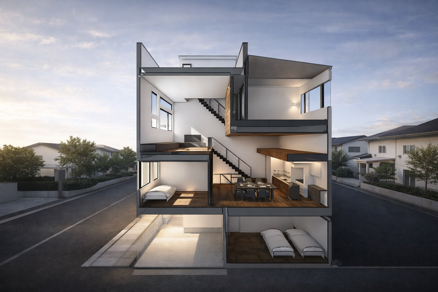 本プランは、木造3.5階建て・4階建てといった都市型住宅に対応し、土地探しから設計・建築までをワンストップで提供することで、煩雑になりがちな手続きや不安を軽減し、安心して住まいづくりを進めることが可能です。