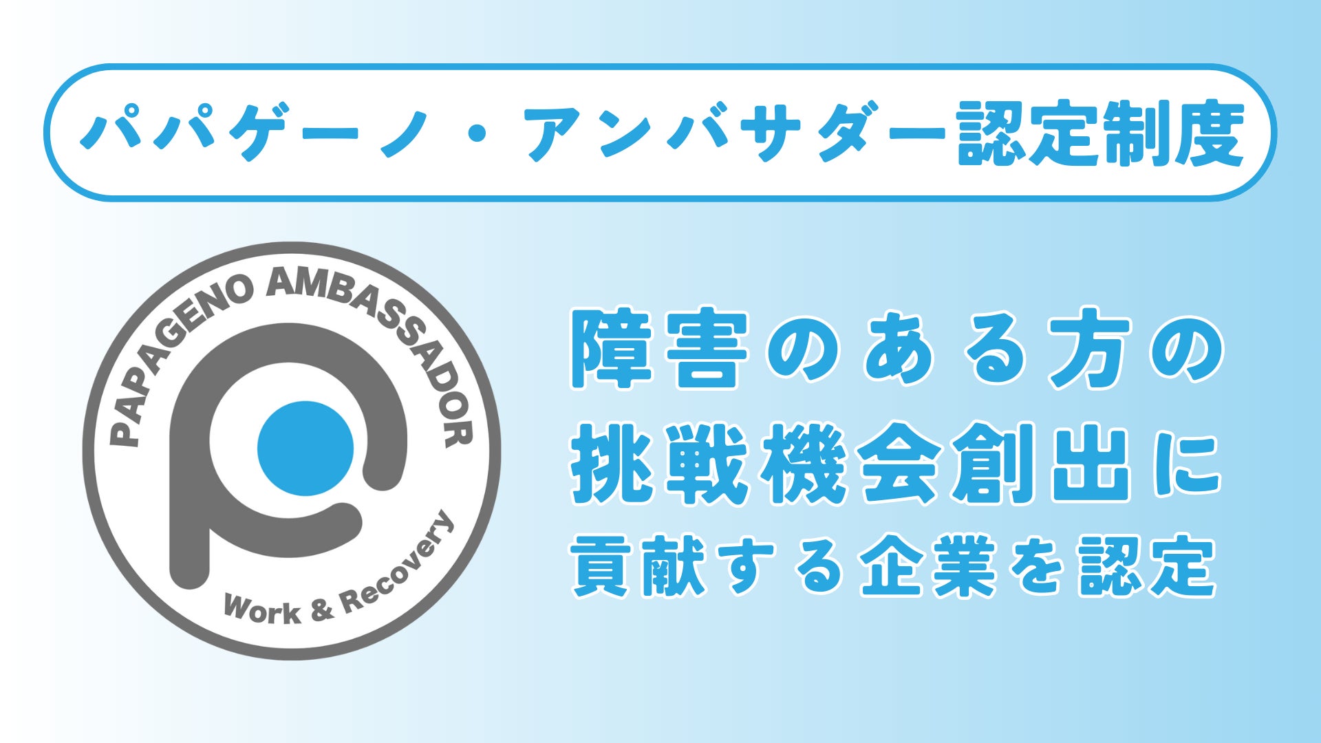 株式会社パパゲーノ(本社:東京都杉並区、代表取締役:田中 康雅)は2025年4月3日、同社が運営する就労継続支援B型事業所「パパゲーノ Work & Recovery」への業務発注企業を対象とした新制度「パパゲーノ・アンバサダー認定制度」を開始いたしました。