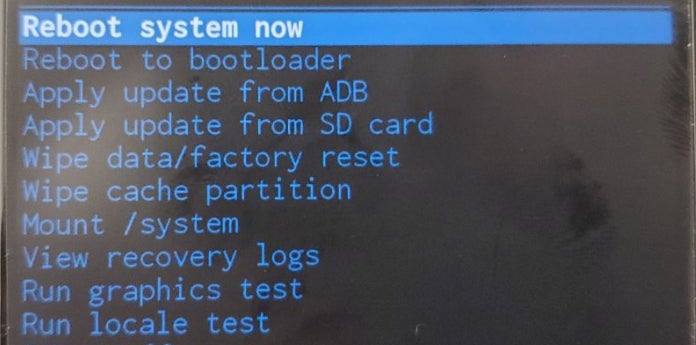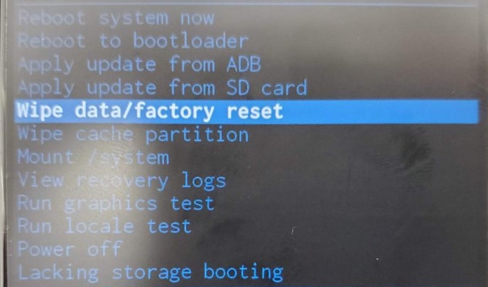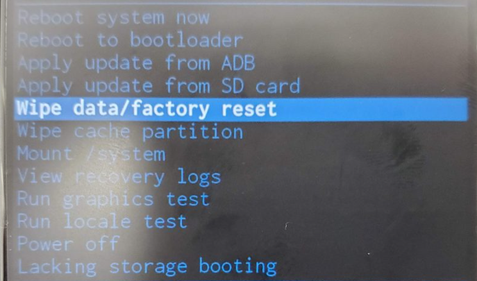 step3:音量ボタンを操作して「Wipe data/factory reset」に移動後、電源ボタンを押します。
