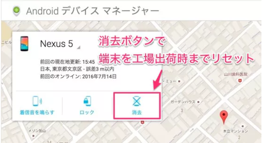 ・「リモートでのロックとデータ消去を許可する」をオンにしている