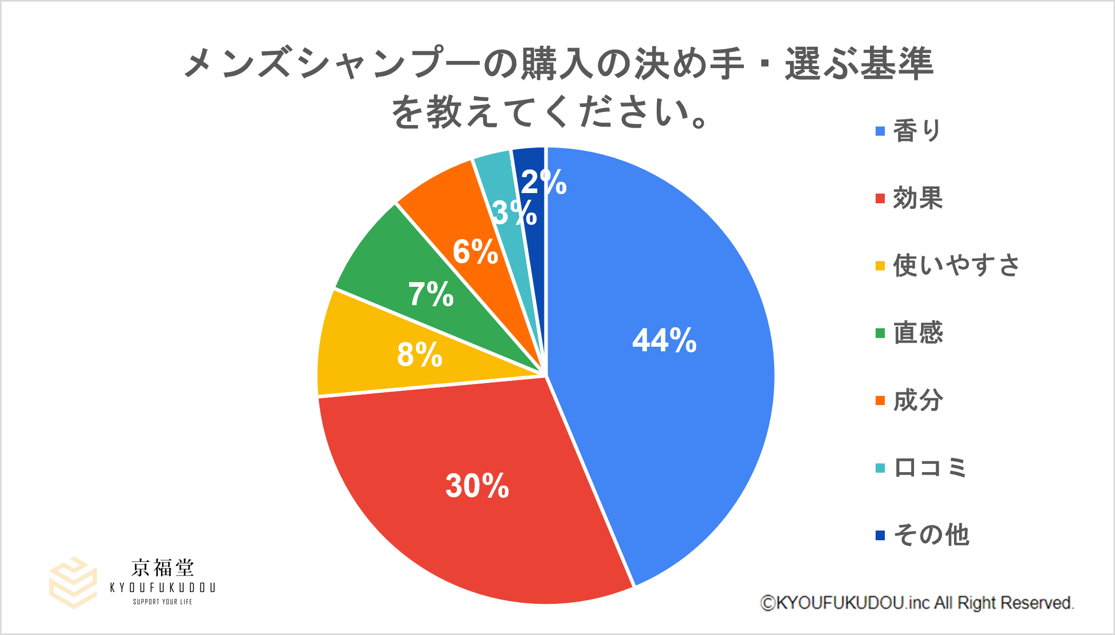 ※本リリースの調査結果・グラフ等を使用する際は【株式会社京福堂「メンズシャンプーへ期待することの意識調査」調べ】とご明記ください。