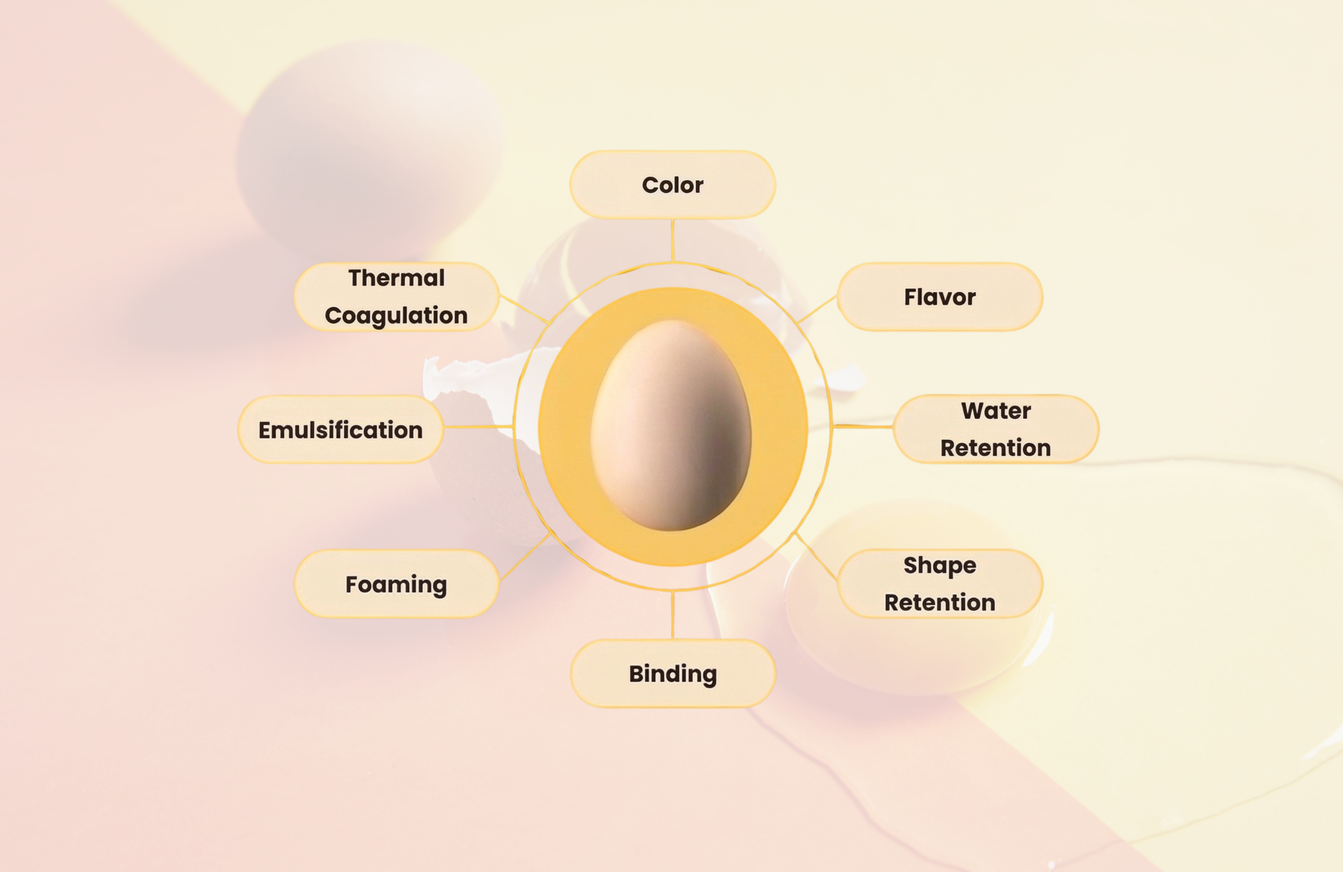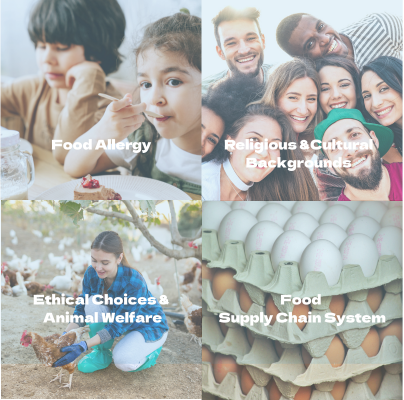 卵は乳化性、起泡性、凝固性といった多様な機能を持ち、食品の品質を支える重要な素材であり、その代替には機能レベルでの再現が求められます。このため、素材特性の理解や加工プロセスの最適化など、実践的かつ応用的な検討が不可欠となります。