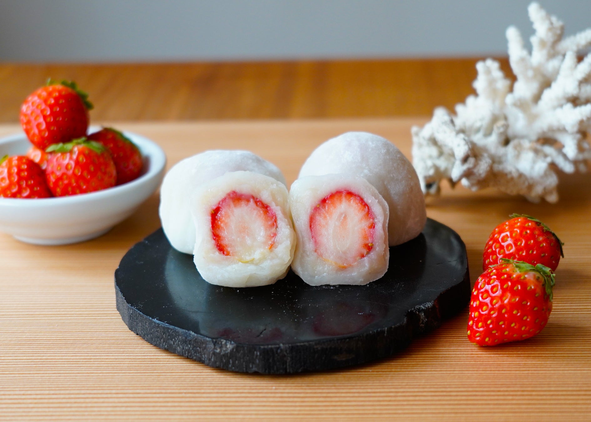 また今回の伊勢丹新宿店の催事限定商品として宮城県山元町のいちご農家高泉さんのよつぼしと京都宇治の老舗奥西緑芳園さんの抹茶を贅沢に使用した「白玉いちご大福(抹茶あん)」を12時からの数量、時間限定で販売を行います。