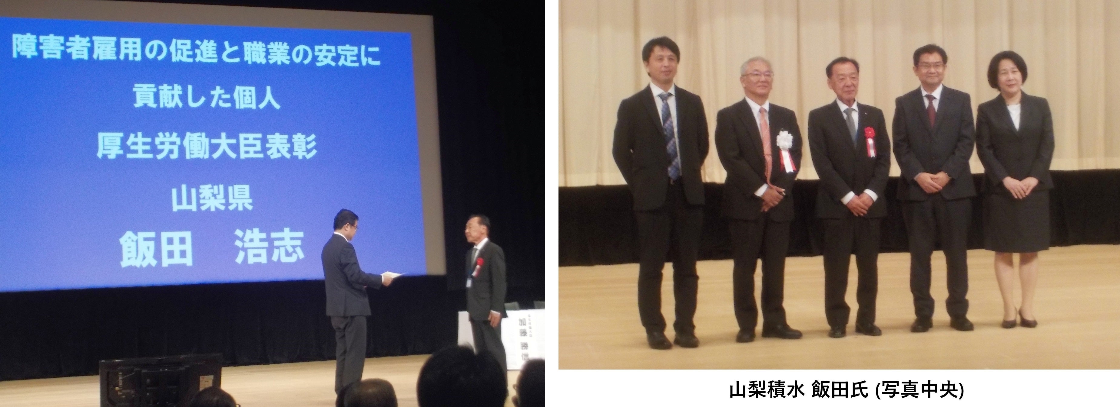 この度、山梨積水株式会社の飯田浩志氏が、令和5年度障害者雇用優良事業所等表彰において、「障害者の雇用の促進と職業の安定に貢献した個人」として厚生労働大臣表彰を受賞いたしました。