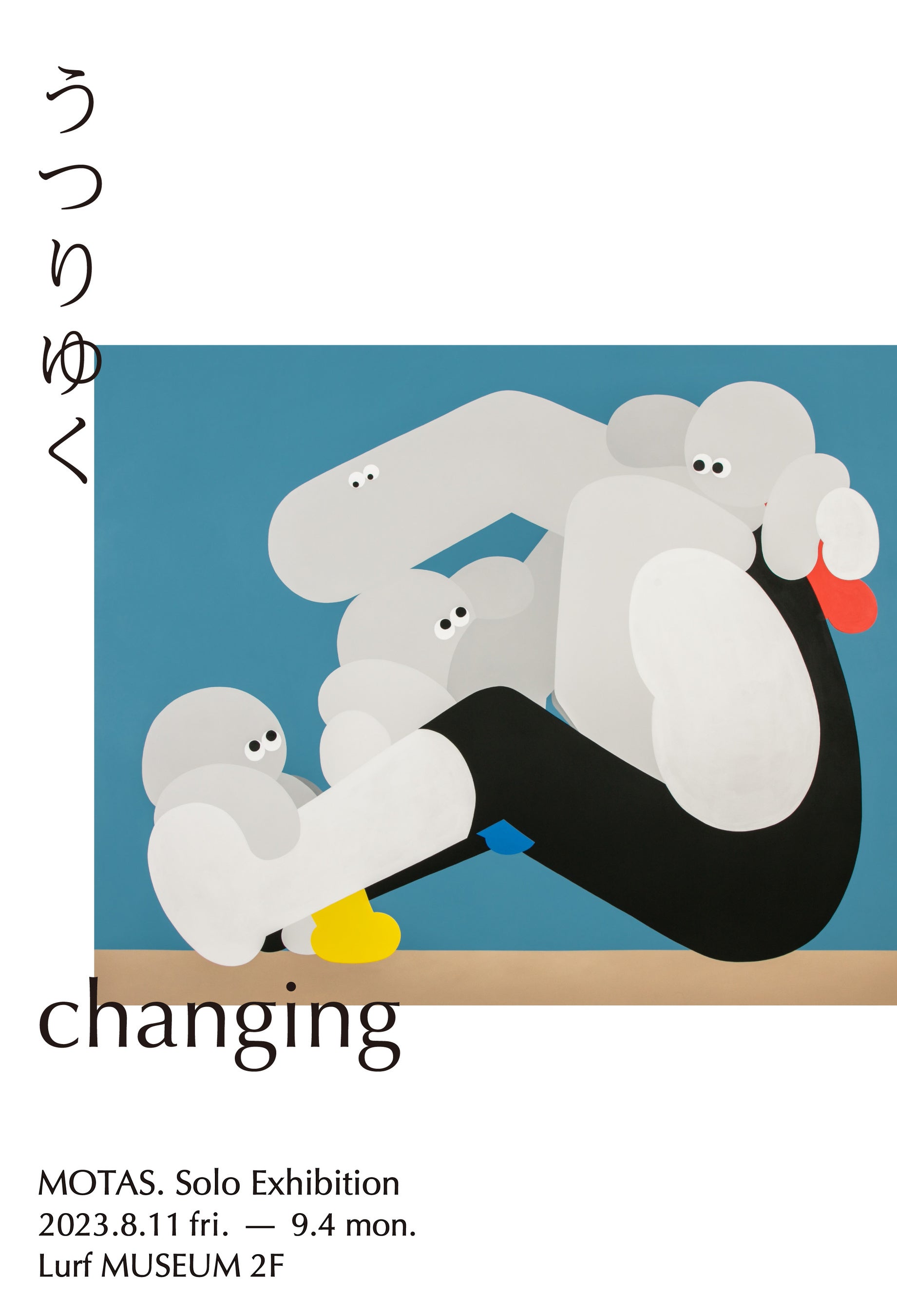 Lurf MUSEUM(ルーフミュージアム)では、アーティスト・MOTAS. 個展「うつりゆく - changing -」を開催いたします。本展では、とどまることがなく移り動く生き物の時間軸をテーマに、大型のペインティングを含む30点のキャンバス作品と、立体作品を展示いたします。ストーリー性や時代性、地域性を超えた不思議とあたたかみを感じさせる描写をお楽しみください。その他、本展に合わせて制作したMOTAS.のグッズをLurf MUSEUMの店頭・オンラインストアにて販売いたします。展示会期は2023年8月11日(金・祝)~9月4日(月)まで。