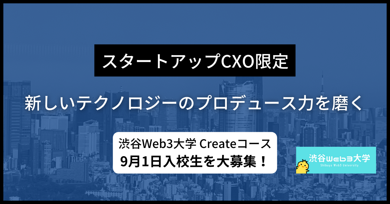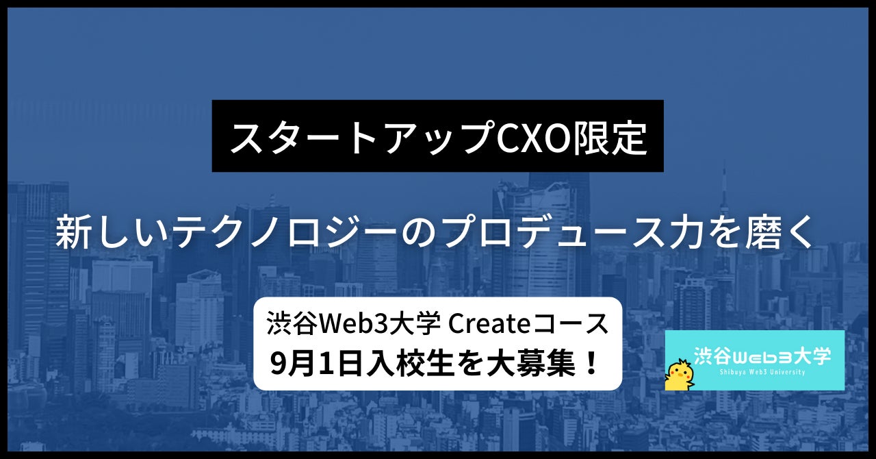 【スタートアップCxO限定】新しいテクノロジーのプロデュース力を磨く「渋谷Web3大学」9月1日Createコース入校生を大募集
