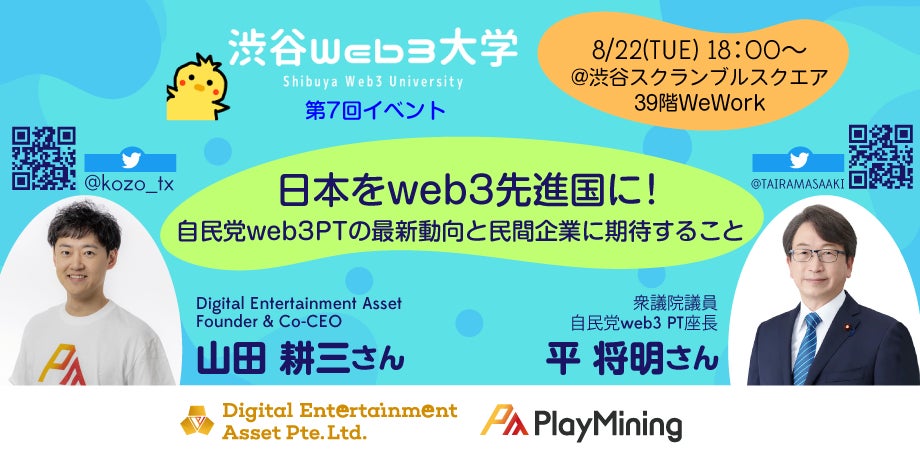 【参加無料】「日本をweb3先進国に!」自民党web3PTの最新動向と民間企業に期待すること【渋谷Web3大学第7回目イベント】