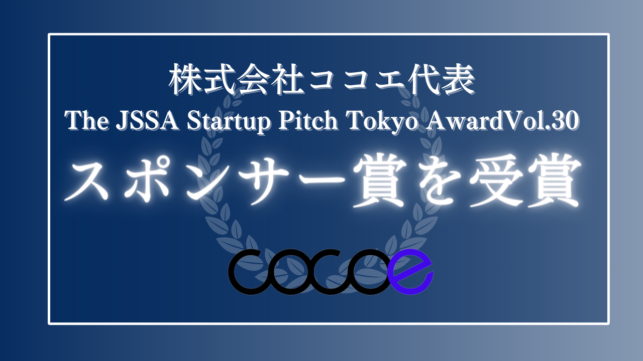 株式会社ココエ代表が『The JSSA Startup Pitch Tokyo AwardVol.30』スポンサー賞を受賞
