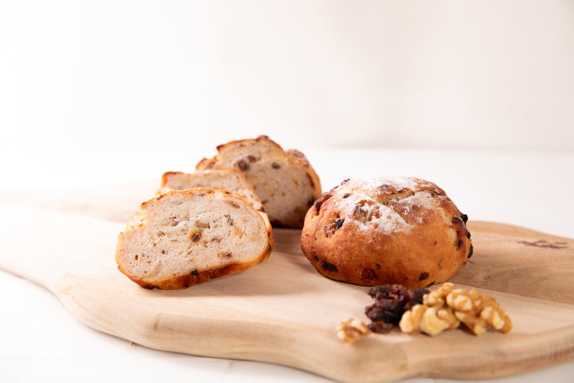 「レーズンとくるみの有機米粉パン」は、米粉パン特有の重さを改善するため、有機コーンスターチを配合。きめ細かく軽やかで繊細な口どけを叶えています。さらにジューシーな房干し有機レーズンや、自社キッチンでローストしてメープルシロップでキャラメリゼしたくるみなど、ひと手間かけた具材をたっぷり混ぜ込みました。噛むほどにくるみの香ばしさとメープルシロップのほのかな甘み、レーズンの甘酸っぱさが広がり、食べ飽きないおいしさです。
