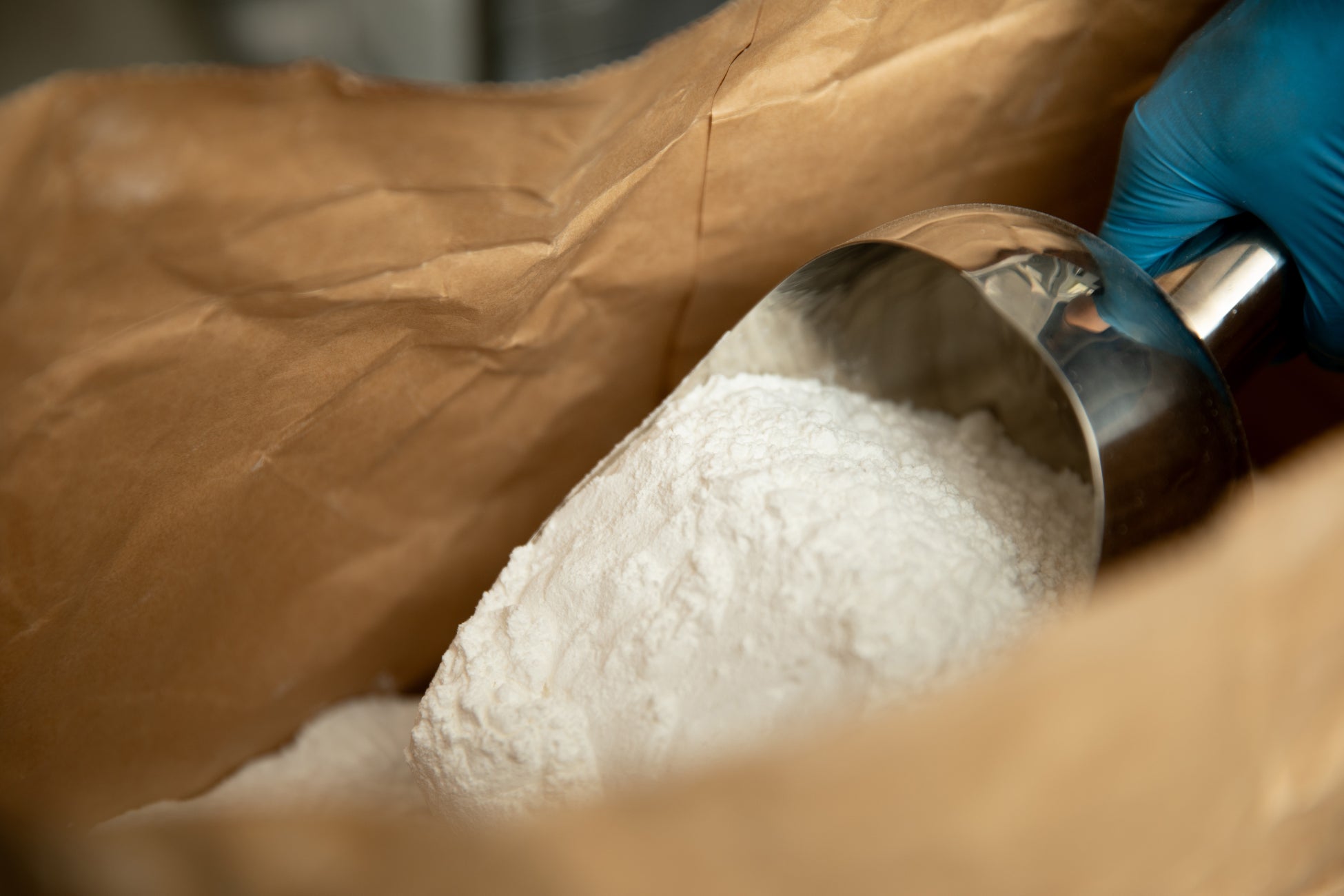田田田堂の人気商品「有機山田錦の生米パン」に続くパン第2弾は、製粉からこだわった米粉を使った成型パン。兵庫県・北播磨にて有機栽培で育てられた山田錦米粉は、酒米の王様として有名ですが、粘りが少なく、うまみや甘みが豊かに詰まったその品質は、焼き菓子やパンの素材としても秀逸です。けれど酒造向けに出荷される際、一定の粒サイズに満たないお米は、規格外品とされてしまいます。そこで田田田堂では、規格外のお米からくず米を取り除いた「中米(ちゅうまい)」を、適正価格で仕入れて農家さんに利益を還元しています。