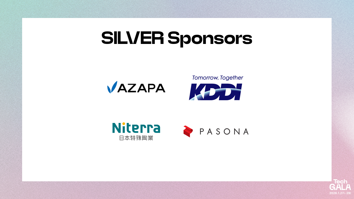 本日、TechGALA 2026にご協賛いただく企業第3弾として、PLATINUMスポンサー、GOLDスポンサー、SILVERスポンサーを公開しました。