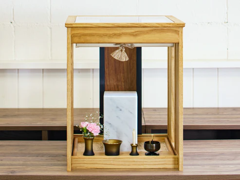 墓石・台座を包み込むように収納した室内用のお墓。