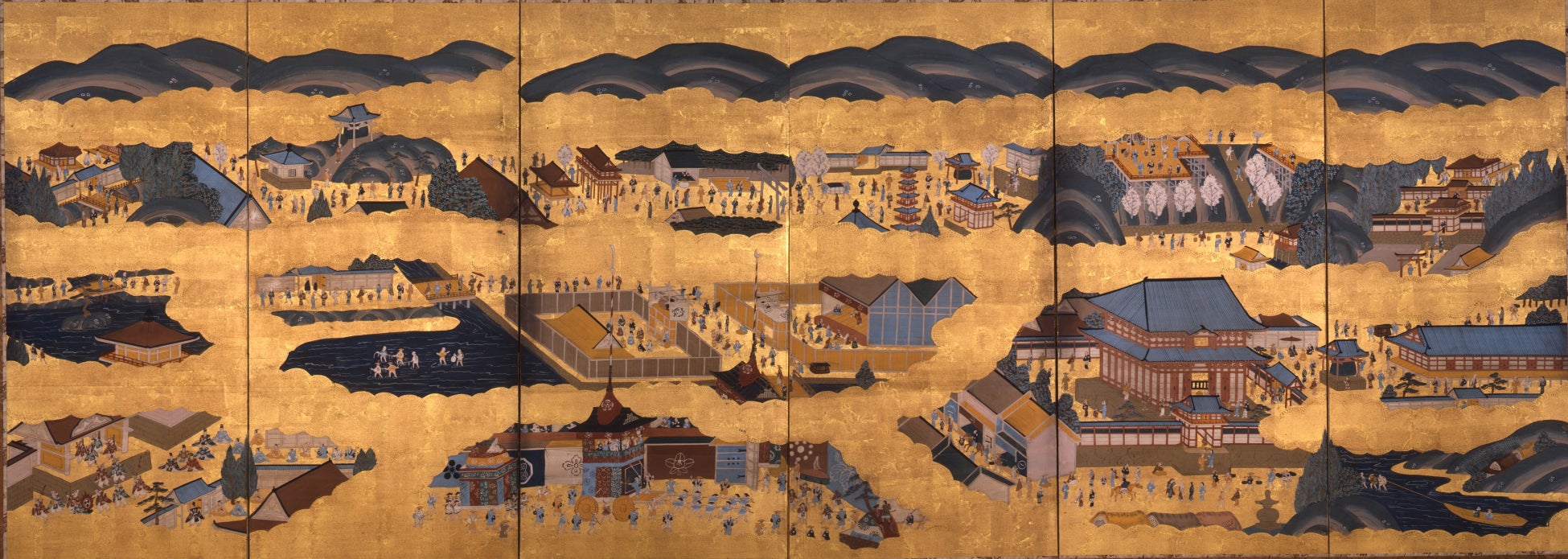 平安のむかしの京都を考証的に描いた京都図、江戸時代につくられた大小さまざまな京都図、そして俯瞰的に都市の様子を描いた「洛中洛外図屏風」などから、時代の変遷とともに姿を変える京都のすがた、また描かれ方によって異なる京都のすがたに触れていただきたいと思います。