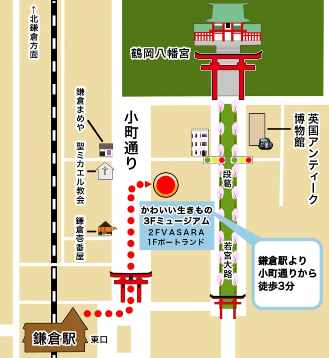 ※鎌倉駅から小町通りを進んでください。