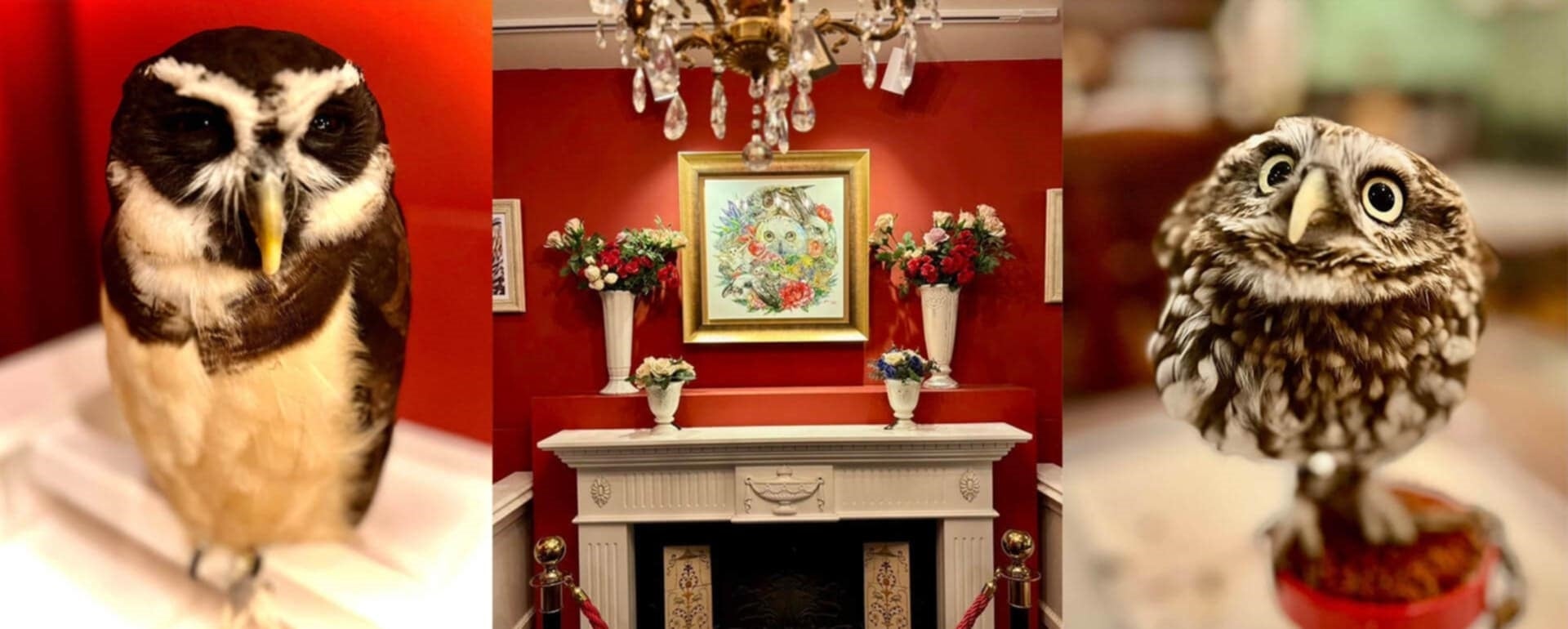 かわいい生きものがアンティークの空間に暮らすミュージアムが鎌倉に誕生。英国アンティーク博物館と画家マツダケンとのコラボにより生き物とアートを融合。フクロウカフェのような触れ合い体験もできます。