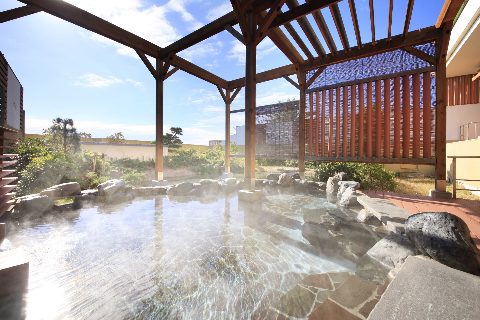 温泉大浴場「湯屋 海の回廊」、貸切露天風呂「天の湯」・「空の湯」・「紅殻の湯」、サウナ、ボディケアサロン「MARUMU」、ロビーラウンジ、THE GUNJO RESTAURANT、個室ダイニング「MIRAI」、PREMIUM LOUNGE、バー「白南風」、ラーメンコーナー「浜路」、カラオケボックス、コンベンションホール、宴会場、結婚式場、売店、ゲームコーナー、鈴木真砂女ミュージアム、手作り体験教室「アトリエ大自然の恵み」、屋外プール(夏季限定)、シーサイドガーデン、駐車場、Wi-Fi完備
