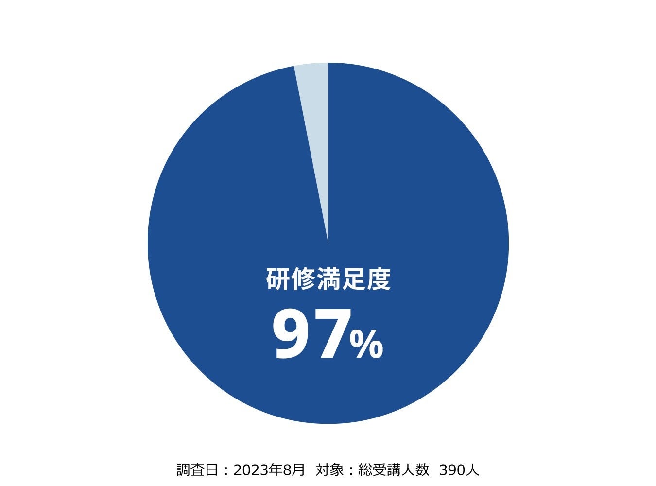 夢真の入社時研修は、研修生から「不安が解消された」「現場で活躍できる自信がついた」など、高い満足度をいただいています。夢真は定期的にアンケートを実施し、研修のさらなる改善に努めています。