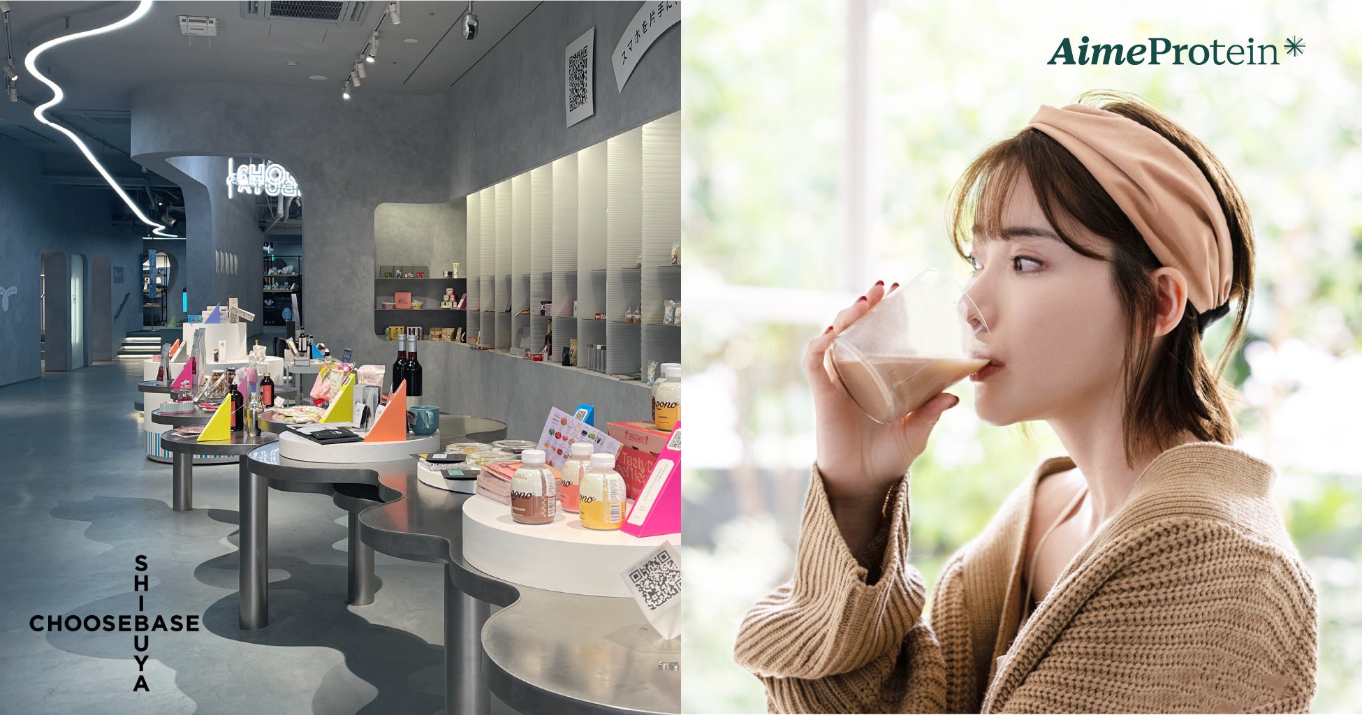 「CHOOSEBASE SHIBUYA」は、新たなブランドと新たな世代のお客さまを商品の持つストーリーを通じて繋げるメディア型OMOストアです。そして、Aime Protein(エメプロテイン)は、かつて自信がなくネガティブだった自分が、「何をきっかけに」自分に自信が持て前向きな気持ちに変化したという深田えいみさんの実体験を反映した美容と健康を促進する栄養バランスの取れた美容プロテインです。様々な理念や志を持つブランドとの出会いの場として、またCHOOSEBASEのコンセプトに共感し、ご来店いただくお客様にAime Proteinの想いと取り組みをお伝えするために、出店を決定いたしました。