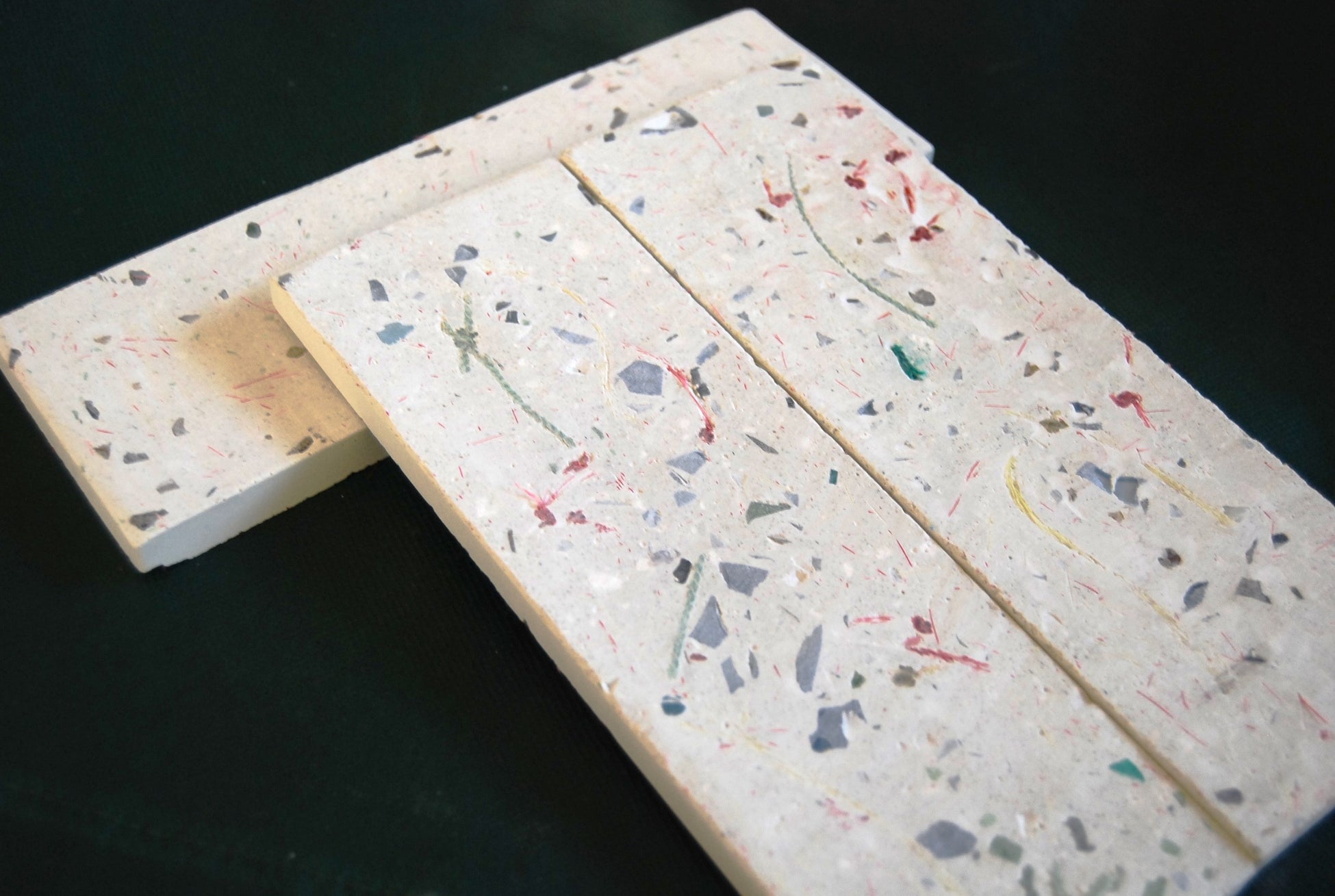 amuca®タイルは難処理プラスチックを粉砕して材料の一部に使用したデザインタイルです。