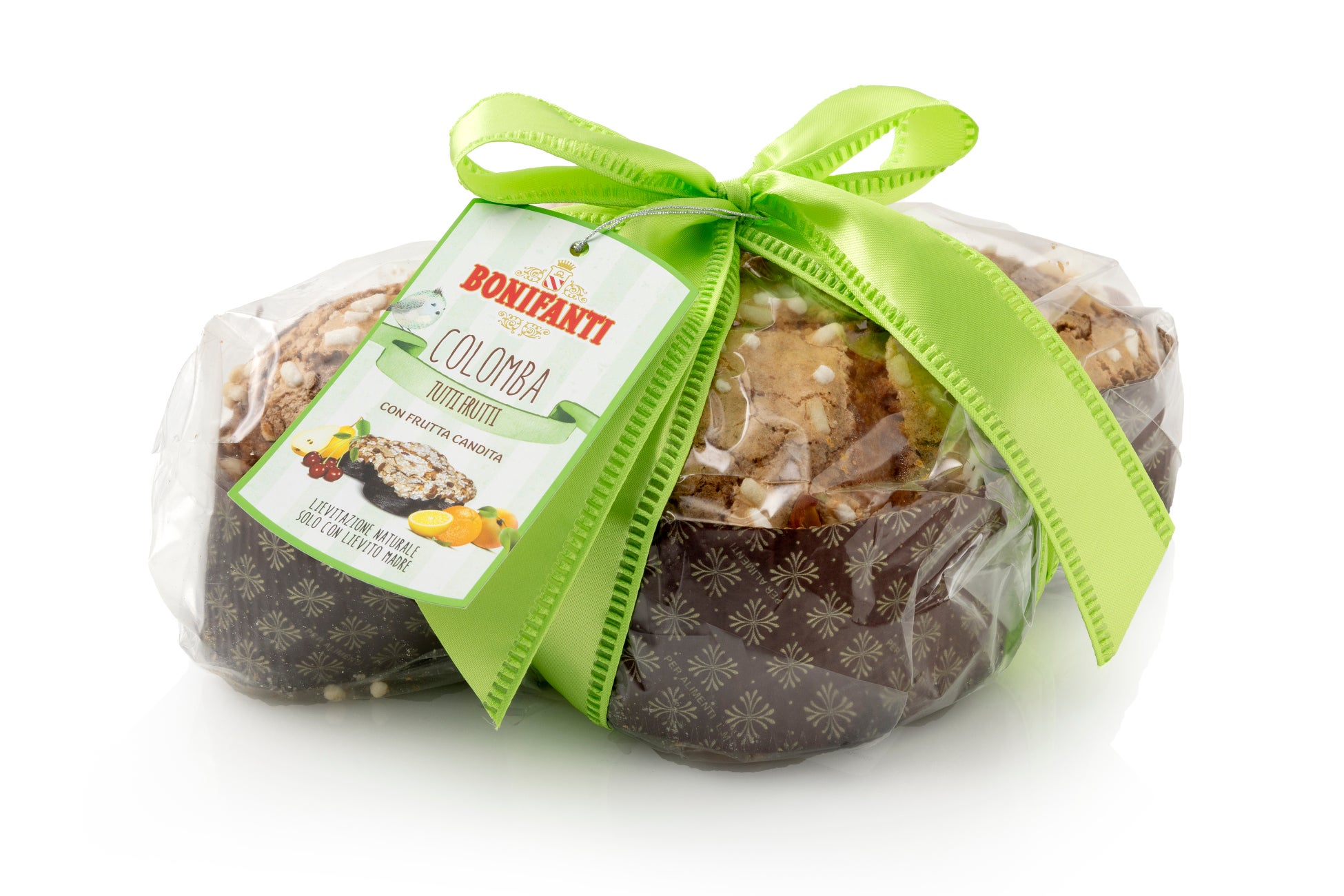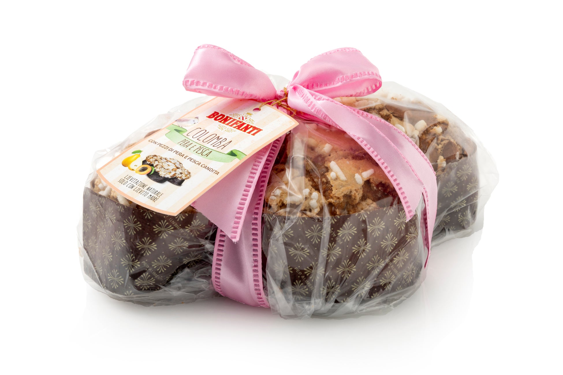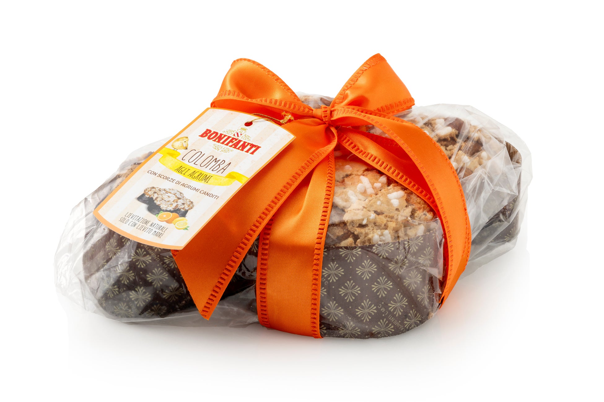「コロンバ」は、イタリアでキリスト教の復活祭を祝う季節に食される発酵生地で作られた甘いパンケーキです。パネットーネ同様に、伝統的に高品質の小麦粉、新鮮な卵、砂糖、バター、天然酵母を使って作られています。30時間以上発酵させた後、生地を幸福の象徴である鳩の形に焼き上げ、最後にパールシュガーとアーモンドをトッピングします。
