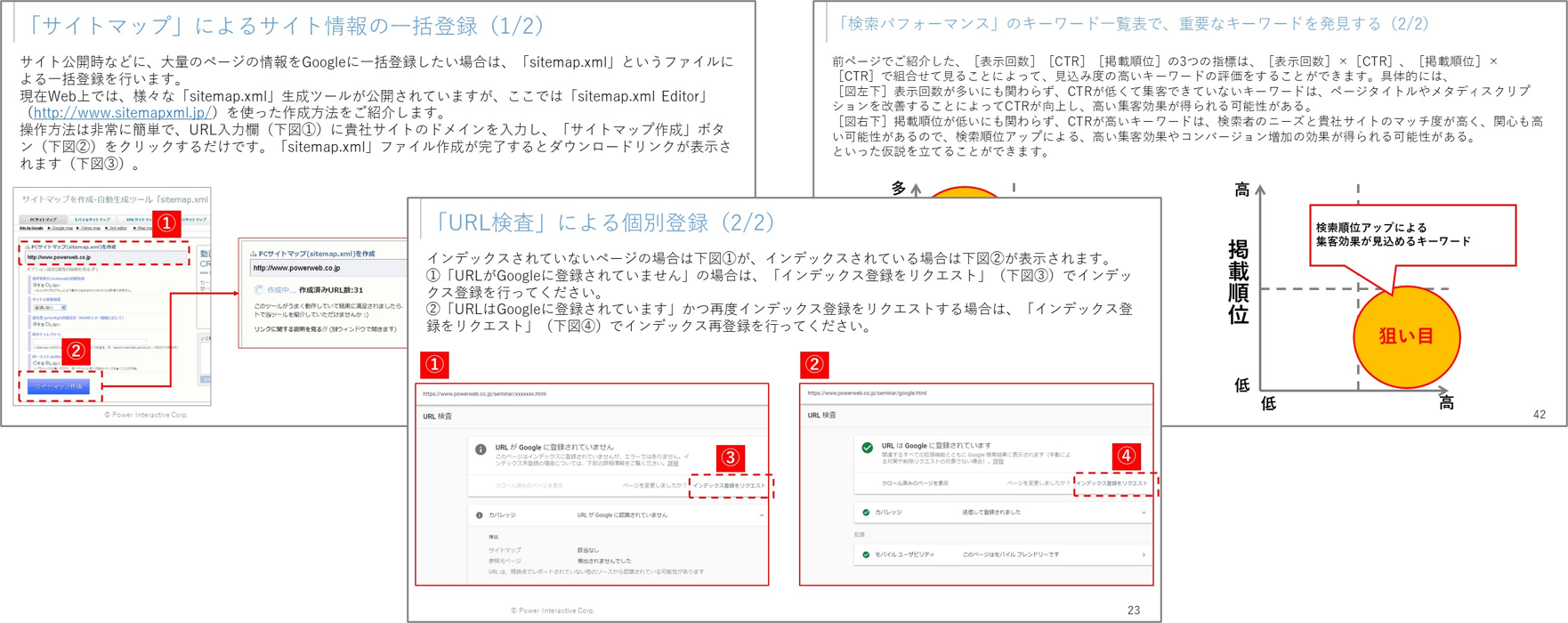 当マニュアルでは、Googleサーチコンソールの導入・設定方法から、SEO施策を進める上で重要な機能についても解説しています。図版を多用した分かりやすい内容ですので、ぜひご活用ください。