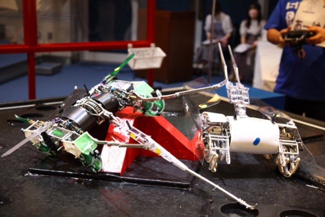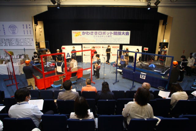 「かわさきロボット競技大会」は、脚・腕構造を持つラジコン型ロボットによる異種格闘技戦です。