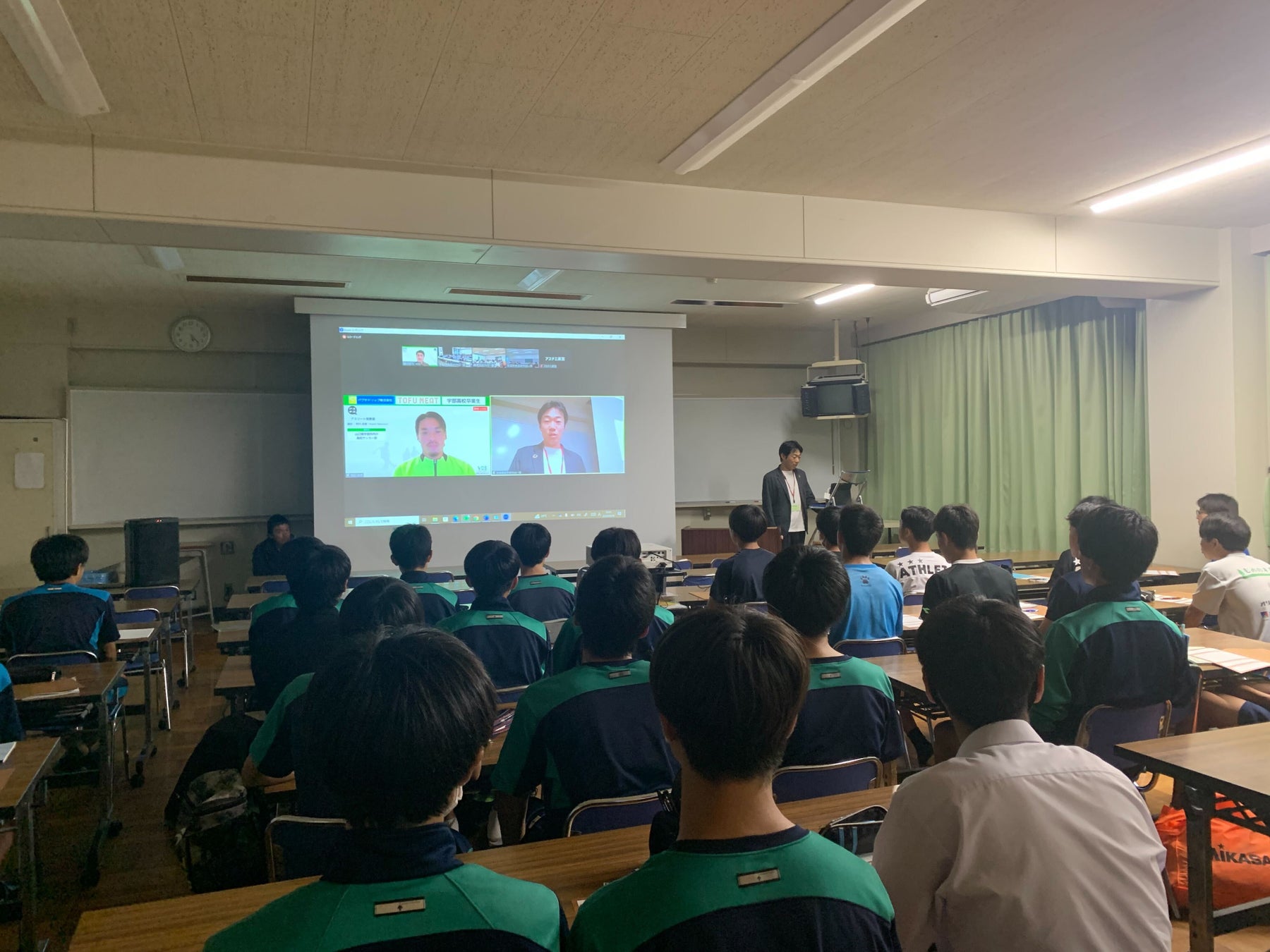 イベントでは、山口県出身で現在プロサッカー選手として活躍している野村直輝選手が講師を担当し、山口県宇部市内の高校サッカー部の生徒約150人を迎えて、オンライン交流会を実施いたしました。