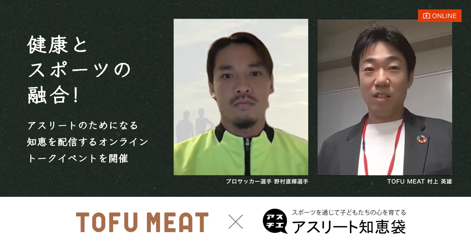 健康とスポーツの融合!「TOFU MEAT」がプロサッカー選手 野村直輝選手とのオンライントークイベントを実施