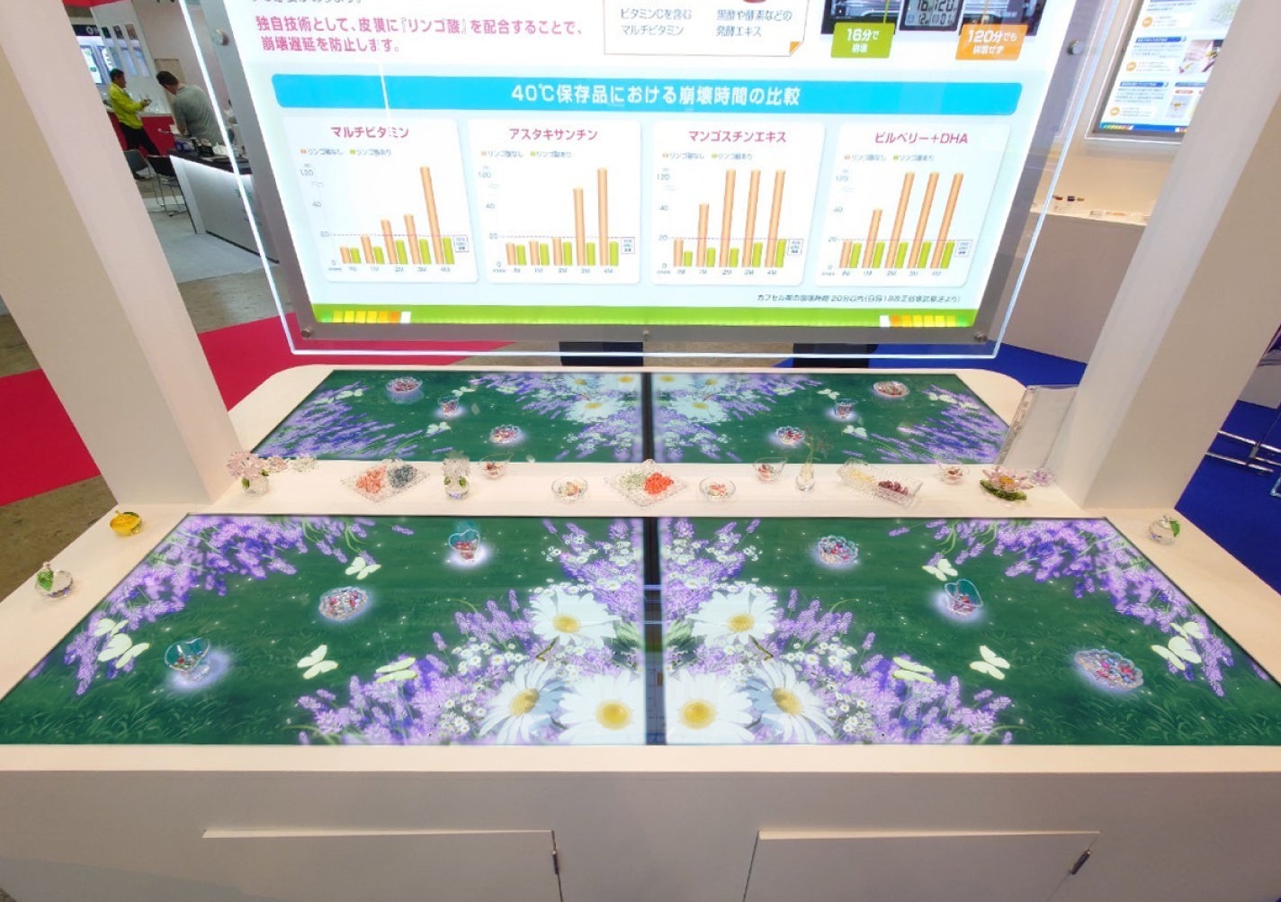 展示台に液晶モニターを埋め込んだ花の展示台やタッチパネルコンテンツを制作