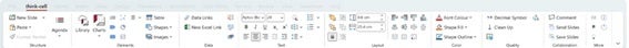 think-cellリボンタブ:すべてのthink-cell機能とパワーポイントまたはエクセルの人気機能を一つに格納したリボンタブを提供します。必要な機能へのアクセスがワンクリックで可能となり、作業を中断することなく、効率化を向上させることができます。
