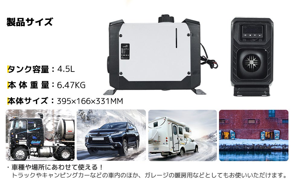 8KW-4.5Lリットル一体式エアヒーター12V仕様:https://lvyuan.jp/collections/vehicle-heater/products/8kw12v-4l-liter-heater-silver
