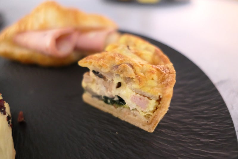 3段目のセイヴォリーには、旬のグリーンピーススープ、チーズの香り高い季節のキッシュ、またクランベリーとアーモンドのオリジナルスコーンは、クロテッドクリームやジャムとご一緒にお召し上がりください。