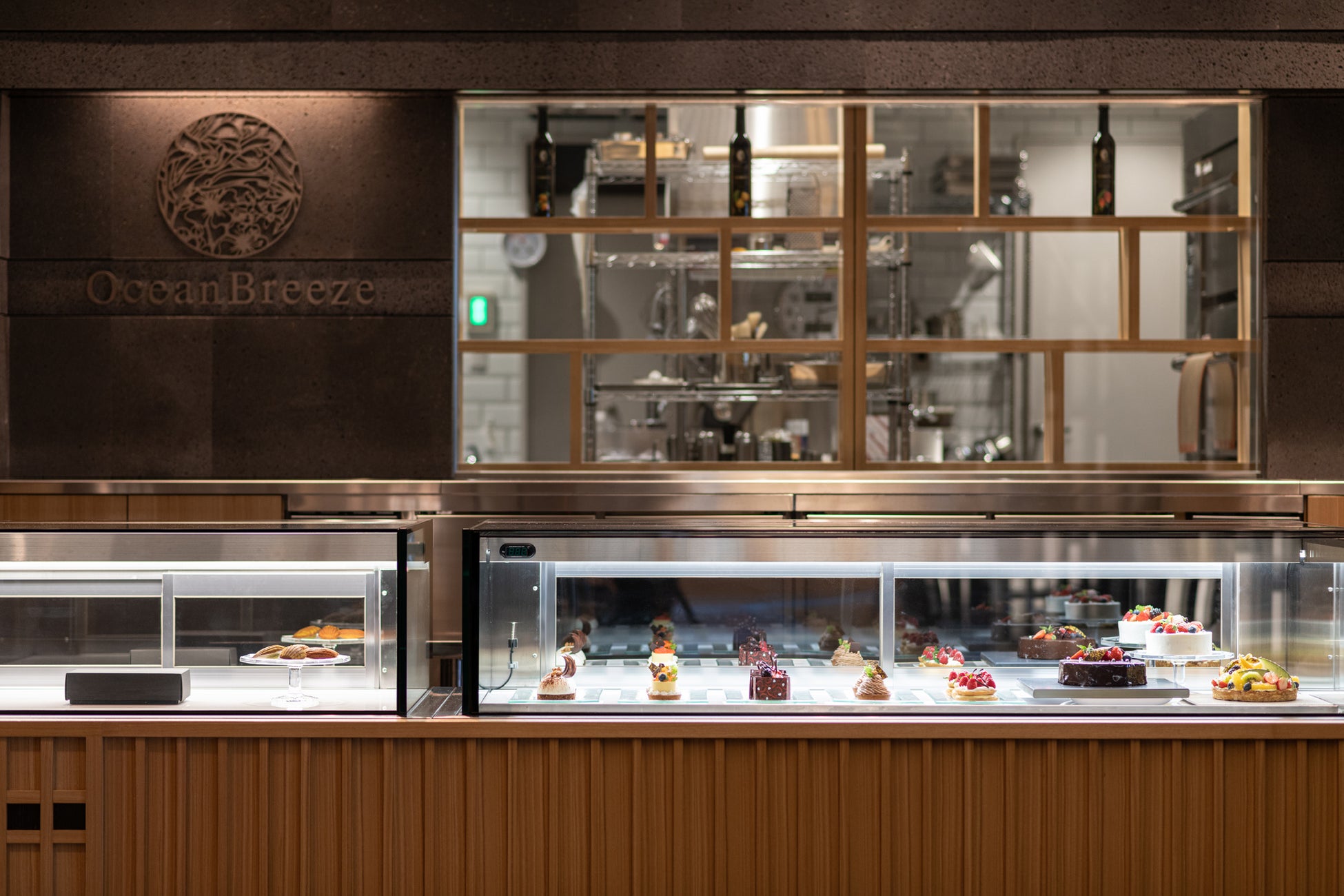 上質な語らいをテーマにしたラウンジは、⽬の前のビーチの賑わいからは全く想像もできない優雅さと静寂に満ちていま す。また伊⾖特有の漆⿊の溶岩⽯で作られた⽔盤には、季節ごとに花が⽣け⼊れられゲストをお迎えし、ホテルラウンジ ならではのエレガントなひとときをご堪能いただけます。契約農園で茶樹を育成し⾃社⼯場で製茶を⾏う地元静岡のクラフト紅茶「静岡紅茶」、ドイツの歴史ある紅茶メーカー「ロンネフェルトティー」などと共に、国内の名店で腕を磨いた パティシエがつくるスイーツと共に⼼落ち着くひと時をお過ごしください。