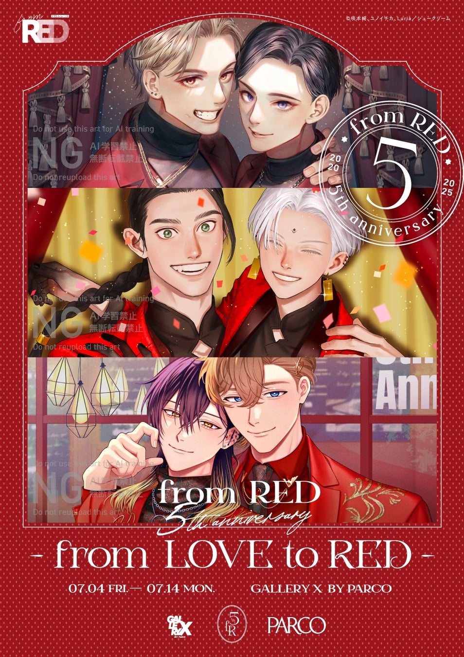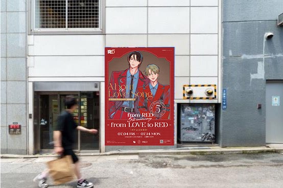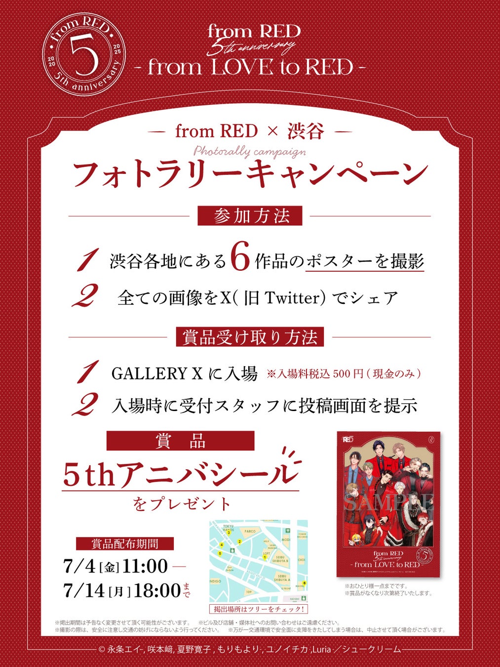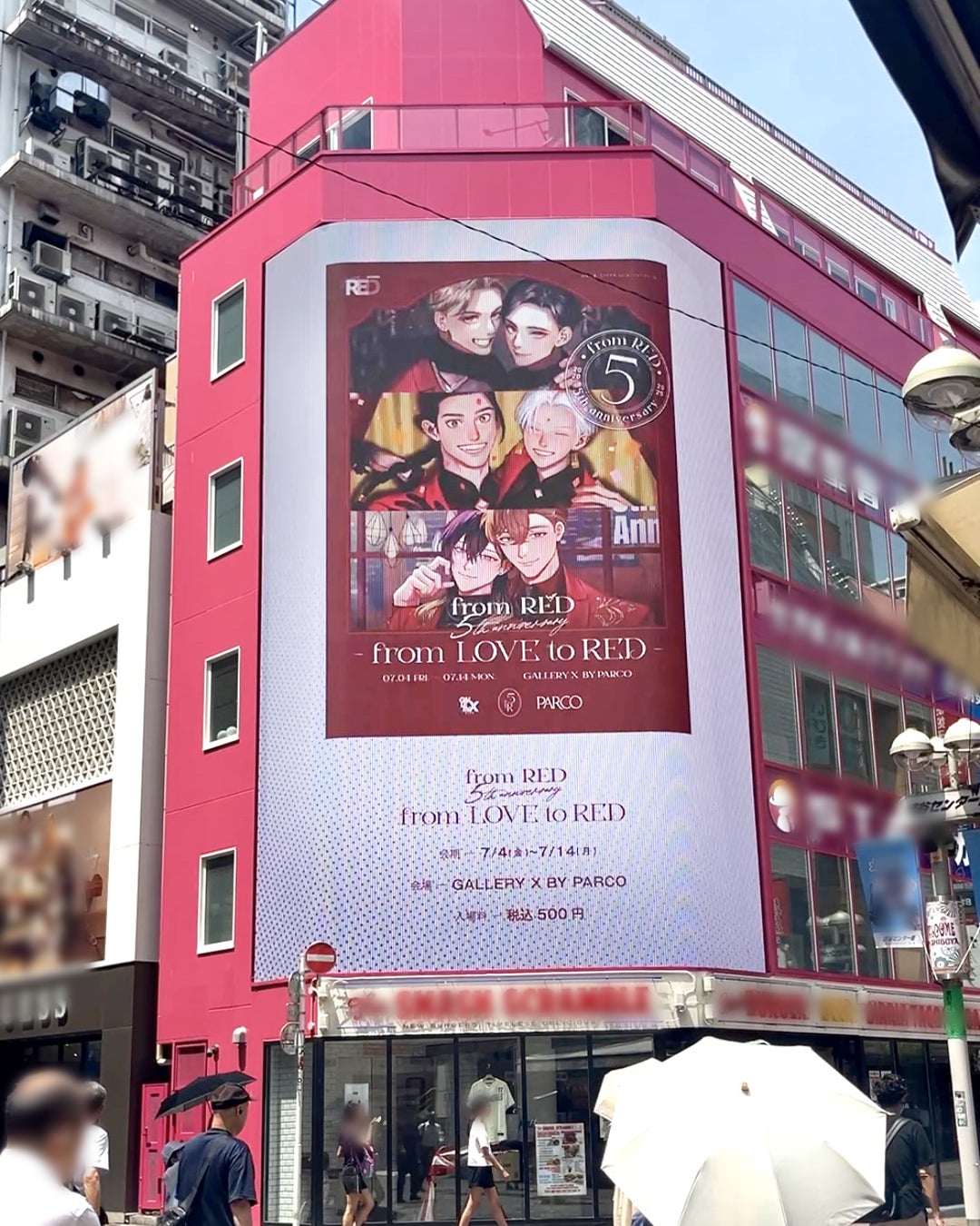 from REDの5周年は渋谷でお祝い !展覧会開催を目前に控え、大型ビジョン動画と記念広告が渋谷の街に展開中。特製ステッカーがもらえる周遊キャンペーンも実施決定。