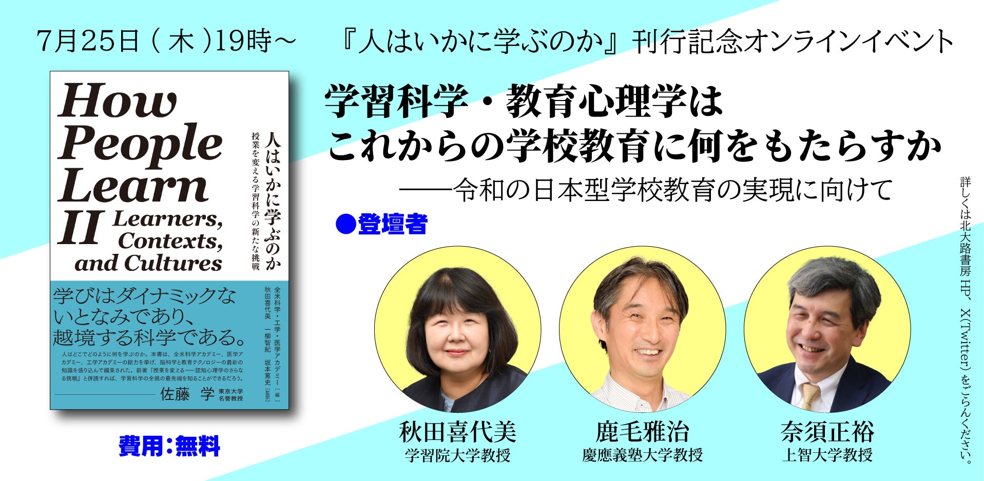7/25 学習科学・教育心理学はこれからの学校教育に何をもたらすか——令和の日本型学校教育の実現に向けて 新刊『人はいかに学ぶのか』刊行記念オンラインイベント開催!秋田喜代美,鹿毛雅治,奈須正裕 登壇