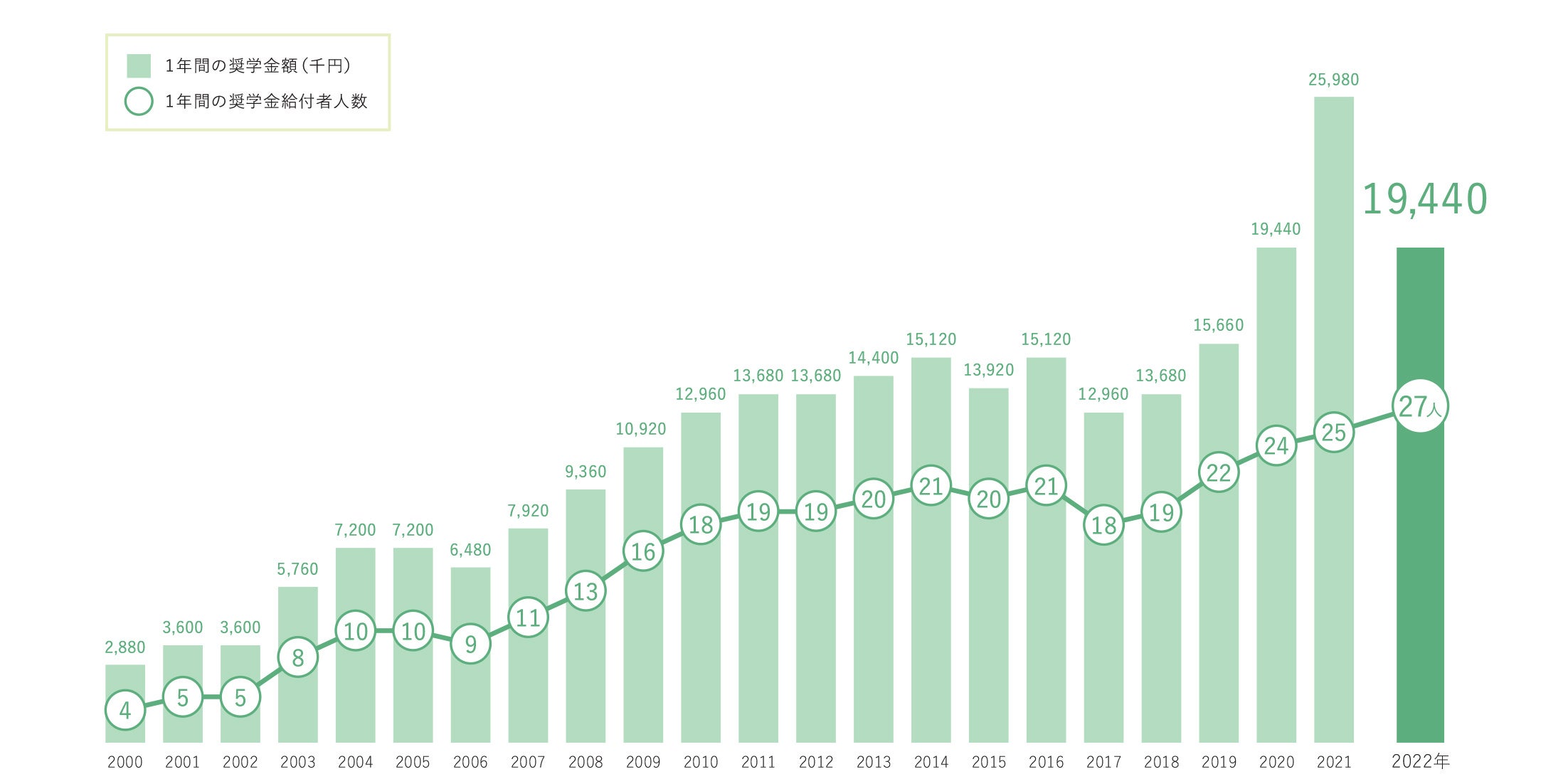 当財団は小児医学の永続的な発展のために小児医学界における将来の担い手の育成や輩出が大切であると考え、1990年に奨学金事業をスタートしました。当初は、埼玉県内の高校を卒業した医学生を対象に貸与型にて行っていましたが、将来的に経済的な負担が残らないよう、2010年に返済義務のない給付型に制度を変更しました。また、2021年度にはコロナ禍で経済的に困窮する学生が増加していることを鑑み、対象者を千葉県内の高校卒業者にも拡大しました。さらに、昨今の急激な物価上昇に応じて、2023年度、給付額を月額7万円に引き上げました。