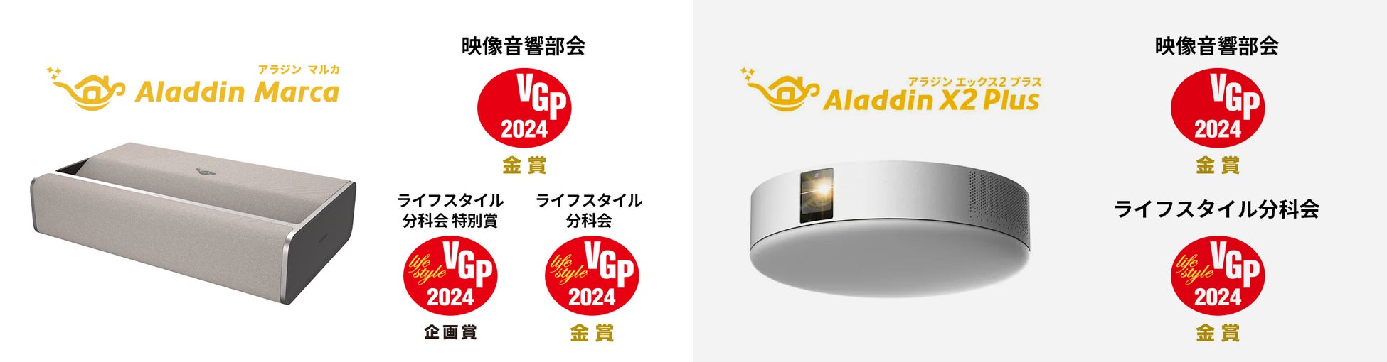 ホームプロジェクター「Aladdin X」の各製品が国内最大級AV機器アワード「VGP2024」にて特別賞、部門賞の金賞を受賞!