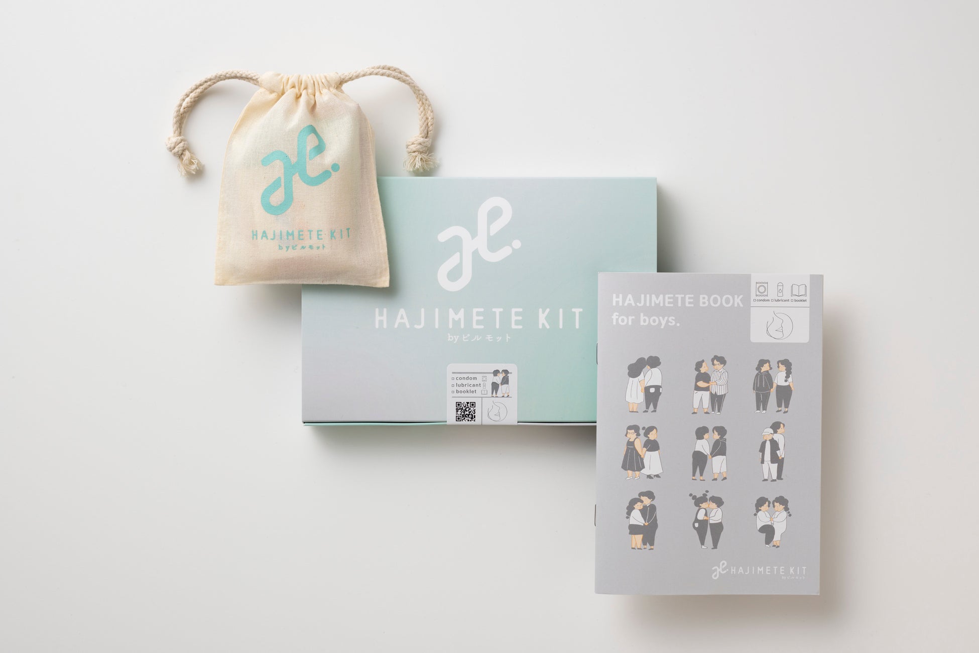 セット内容:小冊子「はじめてブック」1冊、コンドーム3個、潤滑ゼリー2個、カード2枚
