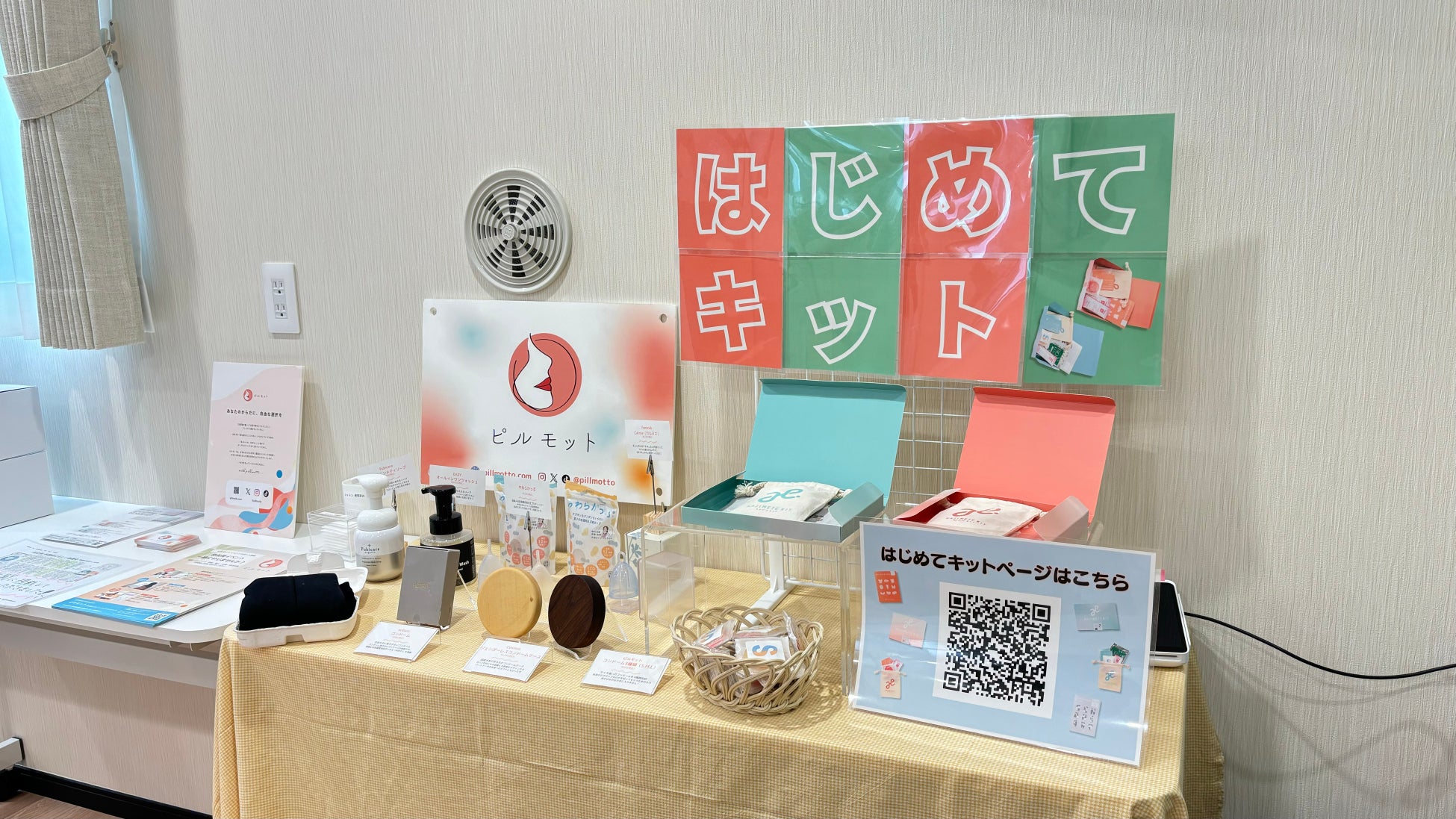 ポップアップストアでは、性の知識を学べるTikTok動画の放映や、ピルモットオンラインストアで取り扱うフェムケア商品と若者向け性教育学習キット「はじめてキット」の販売を行いました。