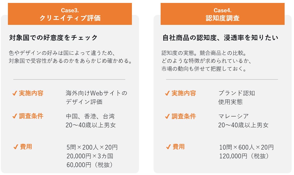 調査実施国によって費用が変動することはありません。今回追加された4カ国での実施の場合も追加のご料金は発生しません。