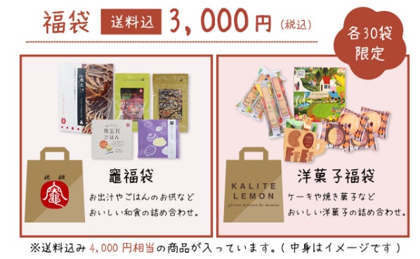 ◆いずれも送料込み『4,000円相当』の商品が入ったお得な福袋となっています。