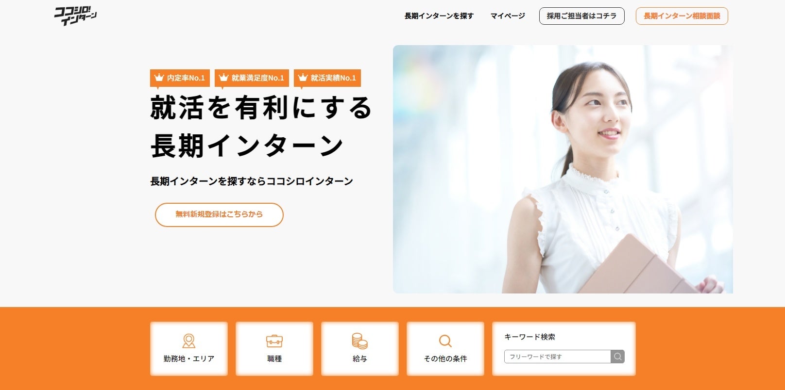 ココシロインターンは、学生と企業をつなぐ長期インターン専門の求人プラットフォームです。優良企業の長期インターン求人を多数掲載し、学生が自分に合った成長機会を見つけられるようサポートしています。
