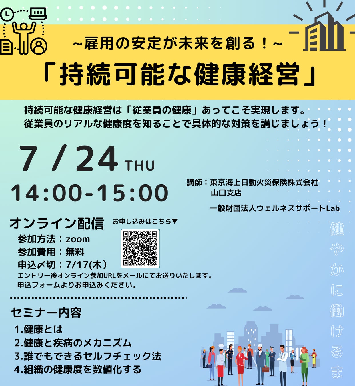 従業員の健康と持続可能な経営を両立したい宇部市内の企業のみなさま、奮ってご参加ください。