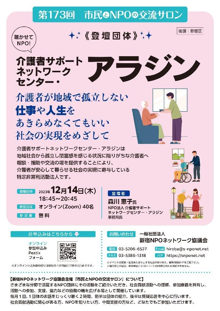 【第173回 市民とNPOの交流サロン 開催のご案内】登壇団体:NPO法人介護者サポートネットワークセンター・アラジン