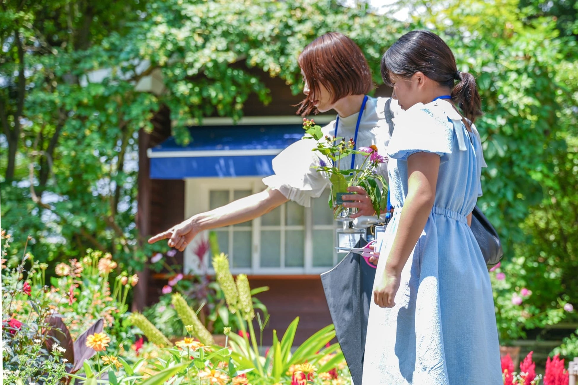 プログラムは、親子一緒にガーデンを散策し、お好みの花を10本ほど摘み取る体験からスタートします。